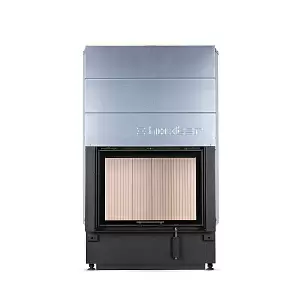 Модель Hoxter Haka 60/50Sh представляет собой каминную топку, отличающуюся сокращённой монтажной глубиной. Ширина её дверцы — 60 см, высота — 50 см. Дверца оборудована подъёмным механизмом, а для удобства очистки стекла от сажи она откидывается вперёд на нижних петлях. По периметру стекла нанесена шёлкография. Чтобы упростить установку в каминный короб, топку можно дополнить монтажной либо декоративной рамкой — чёрного цвета или из нержавеющей стали, шириной 50 или 80 мм. Внутренняя часть топочной камеры выложена шамотным огнеупорным кирпичом. Благодаря системе подового горения дрова сгорают практически полностью. Дверца может поставляться с одинарным или двойным остеклением. Двухслойное стекло снижает излучение лучистого тепла на 30%, что повышает общую эффективность горения.