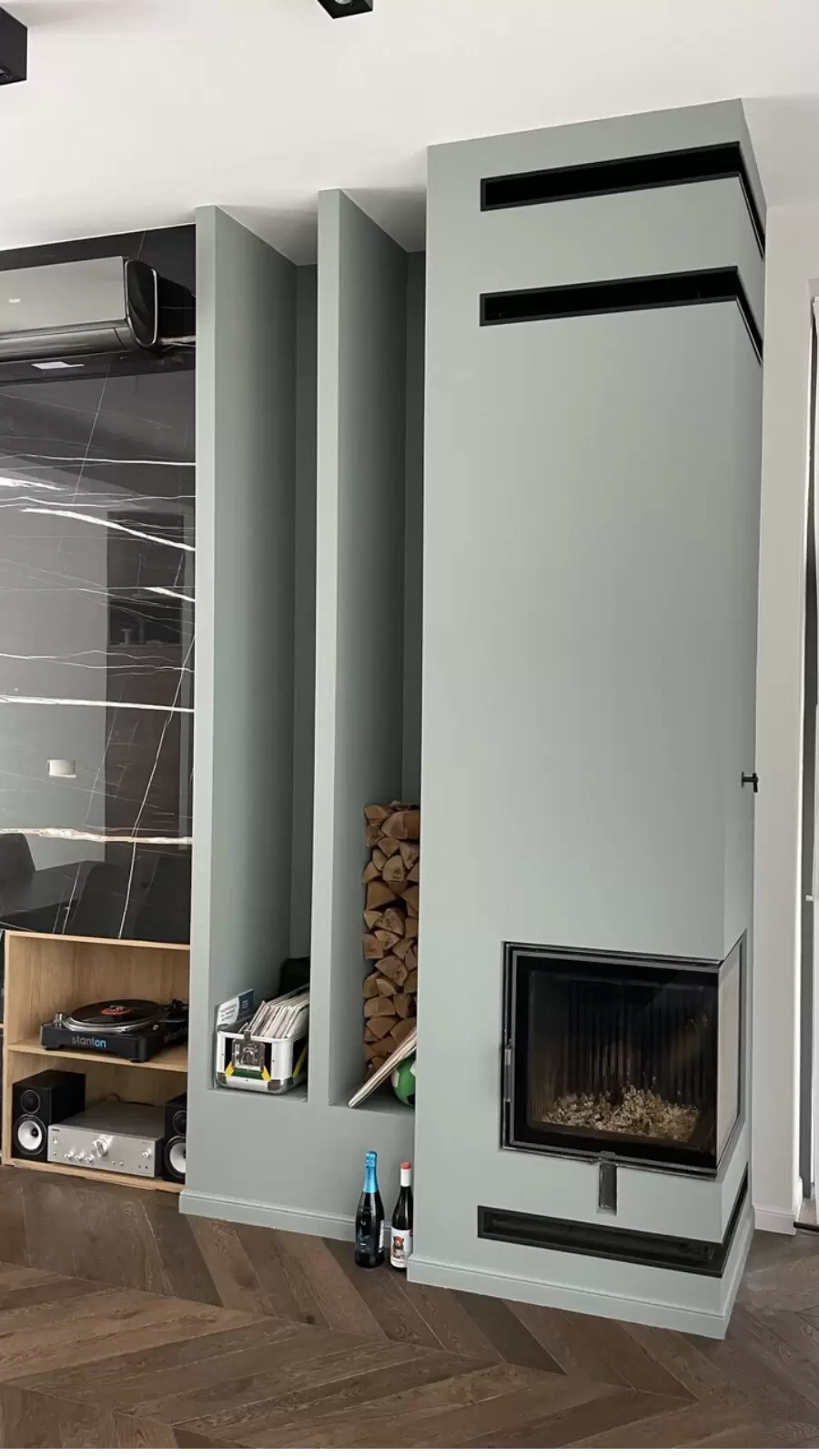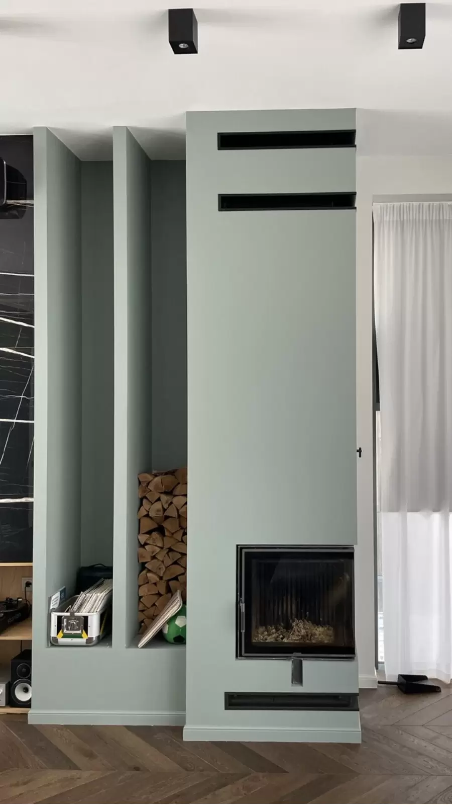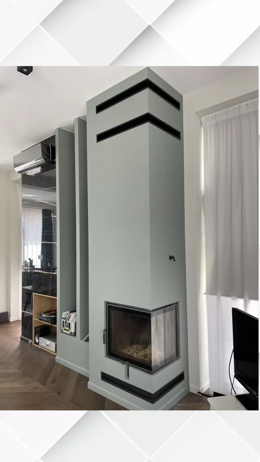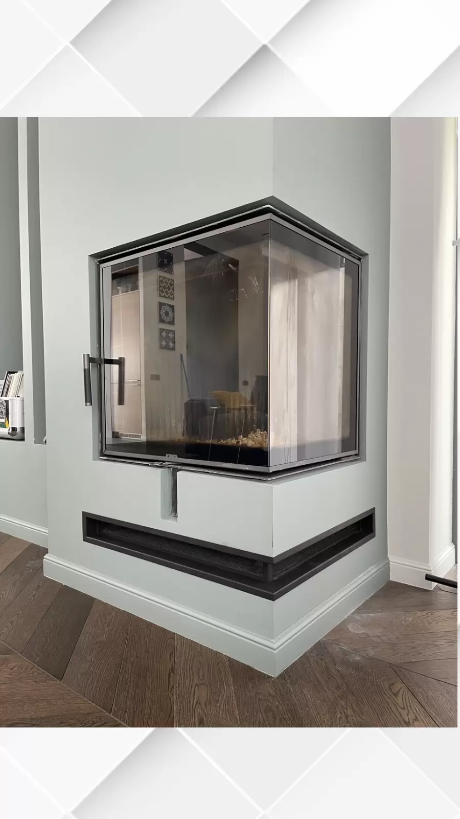 - врезаны каминные решетки (изготовлены на заказ под объект).
