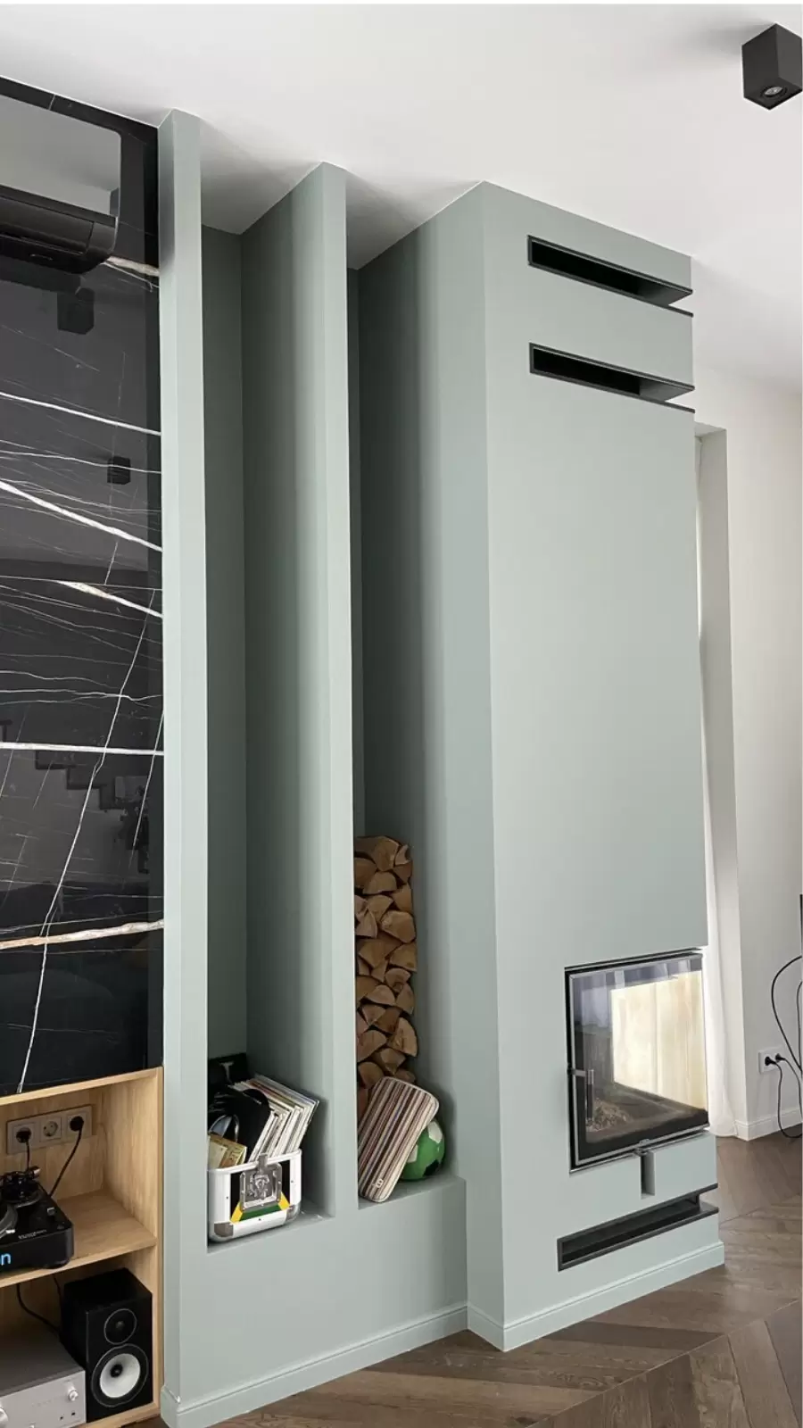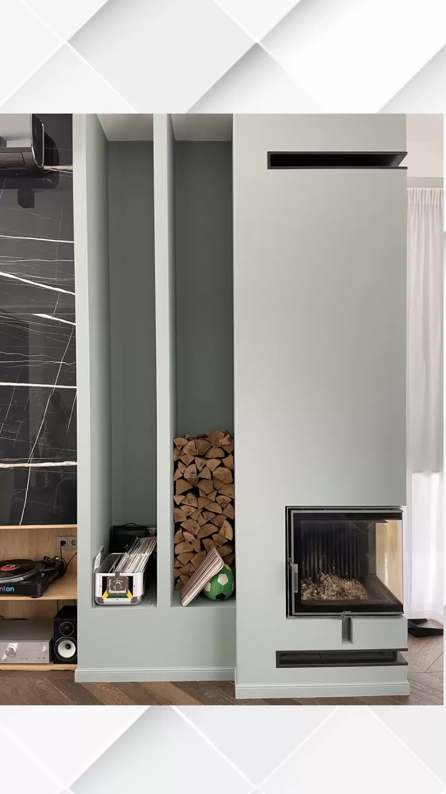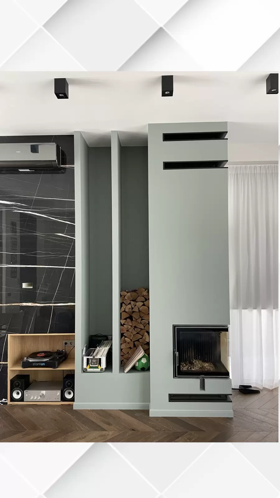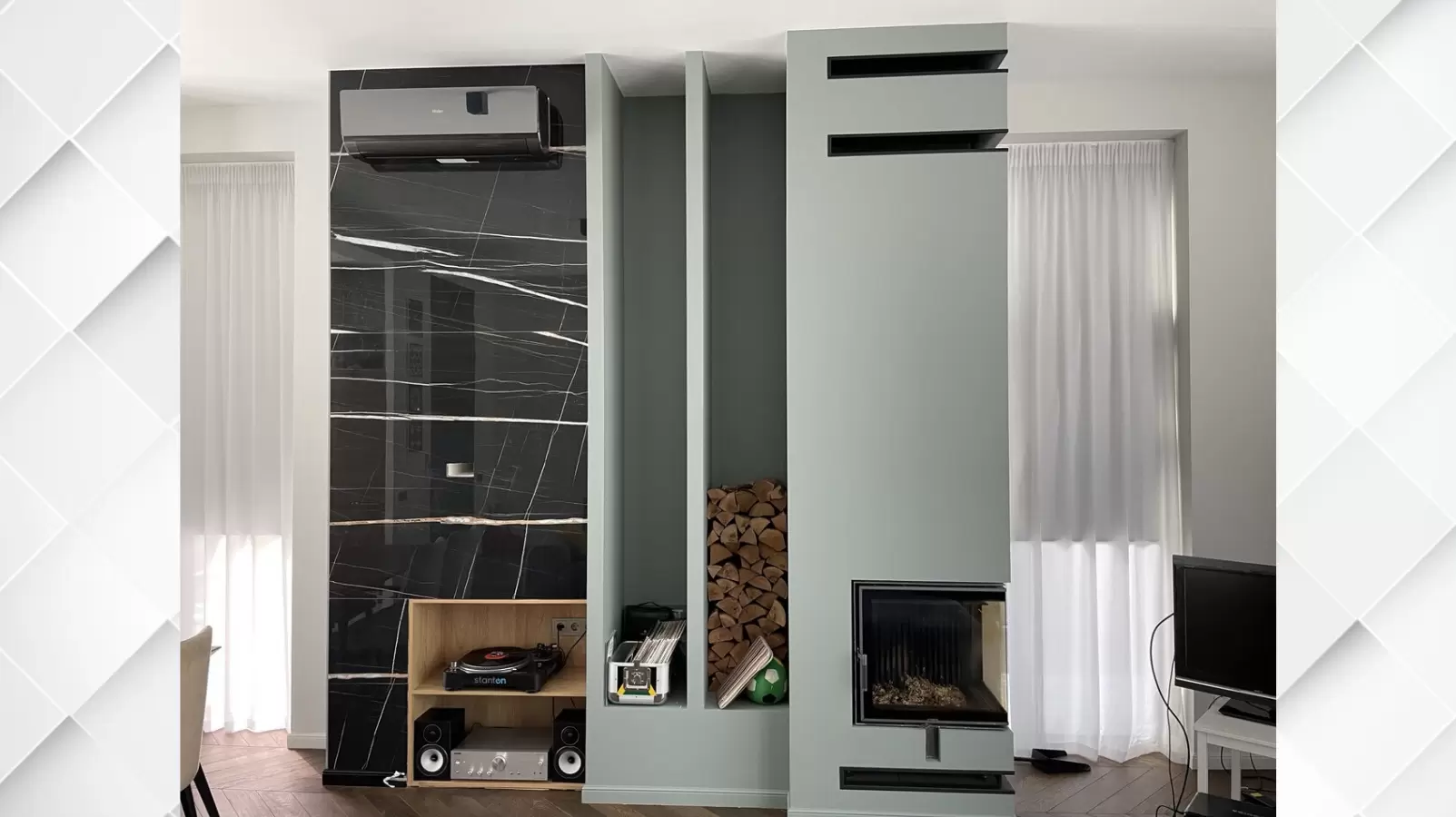 - врезаны каминные решетки (изготовлены на заказ под объект).