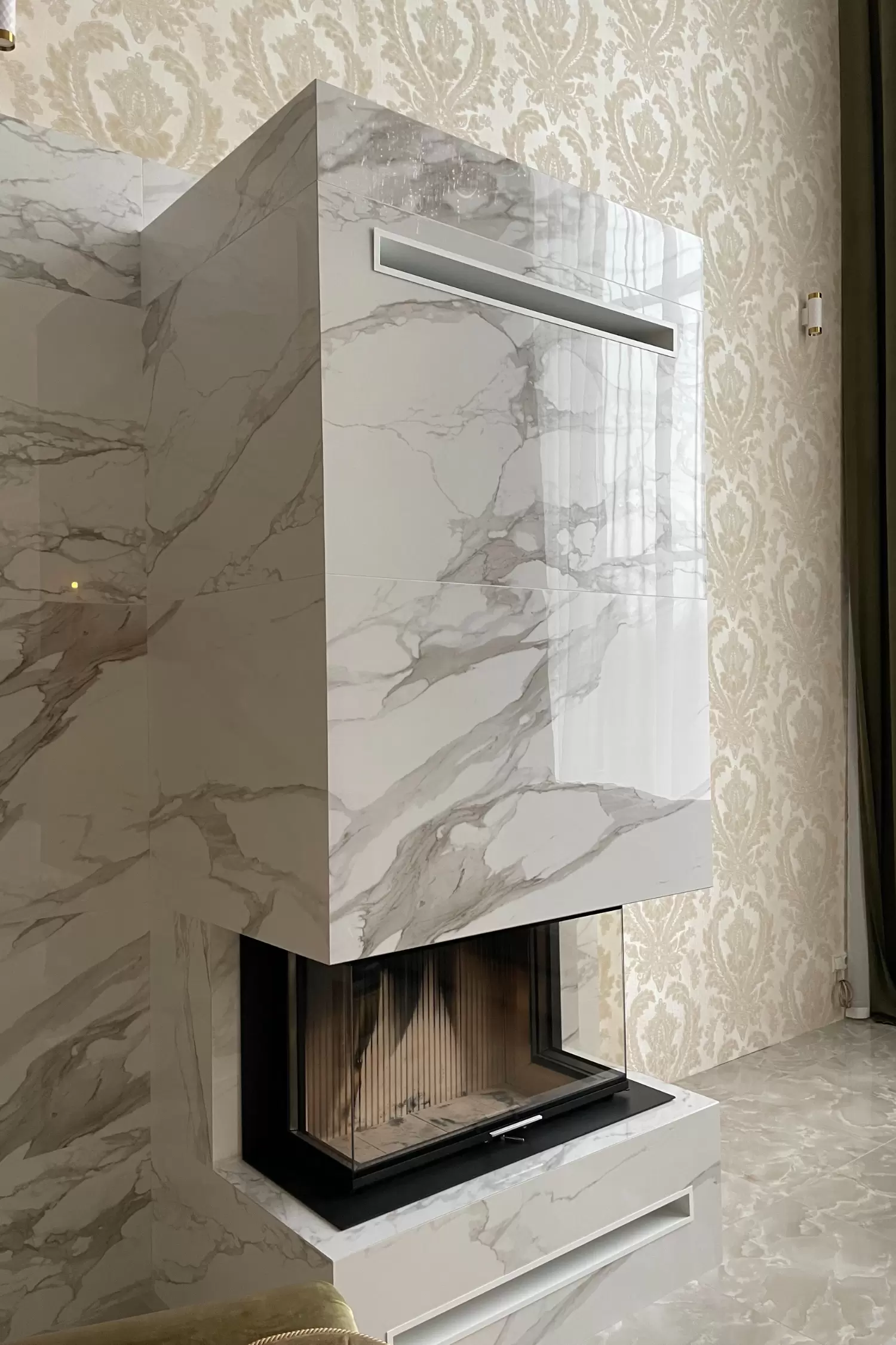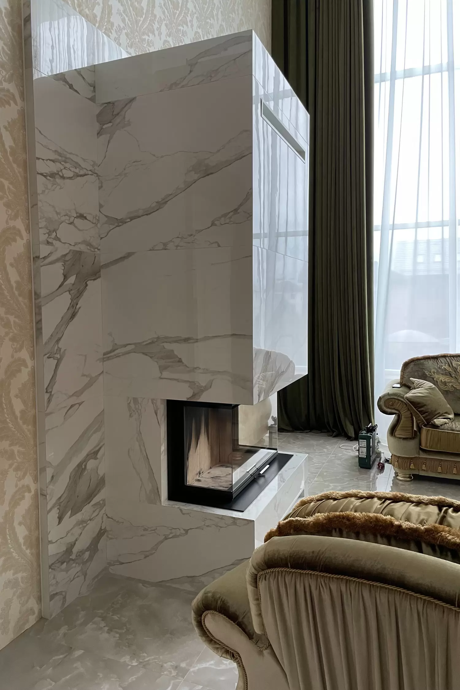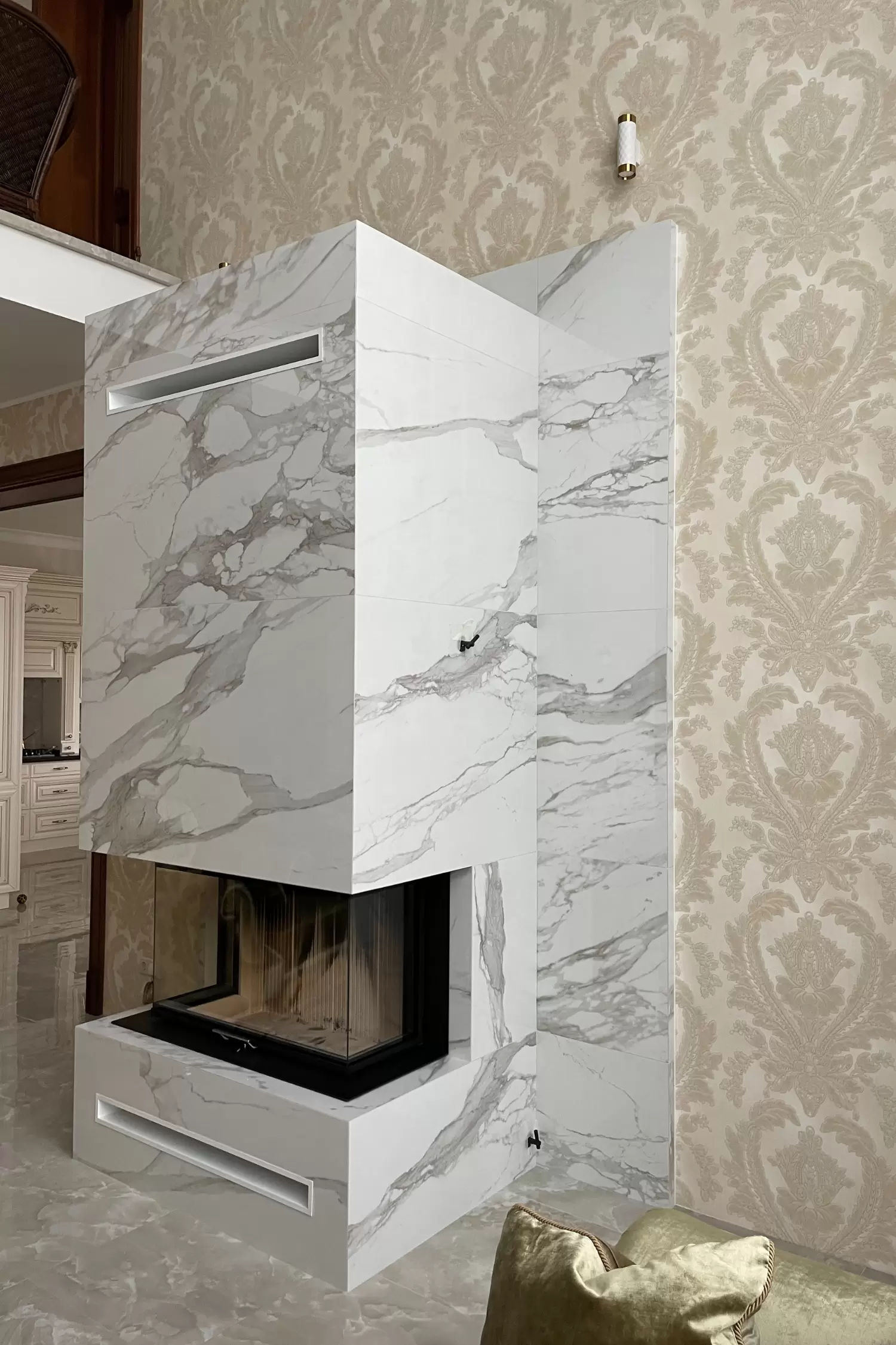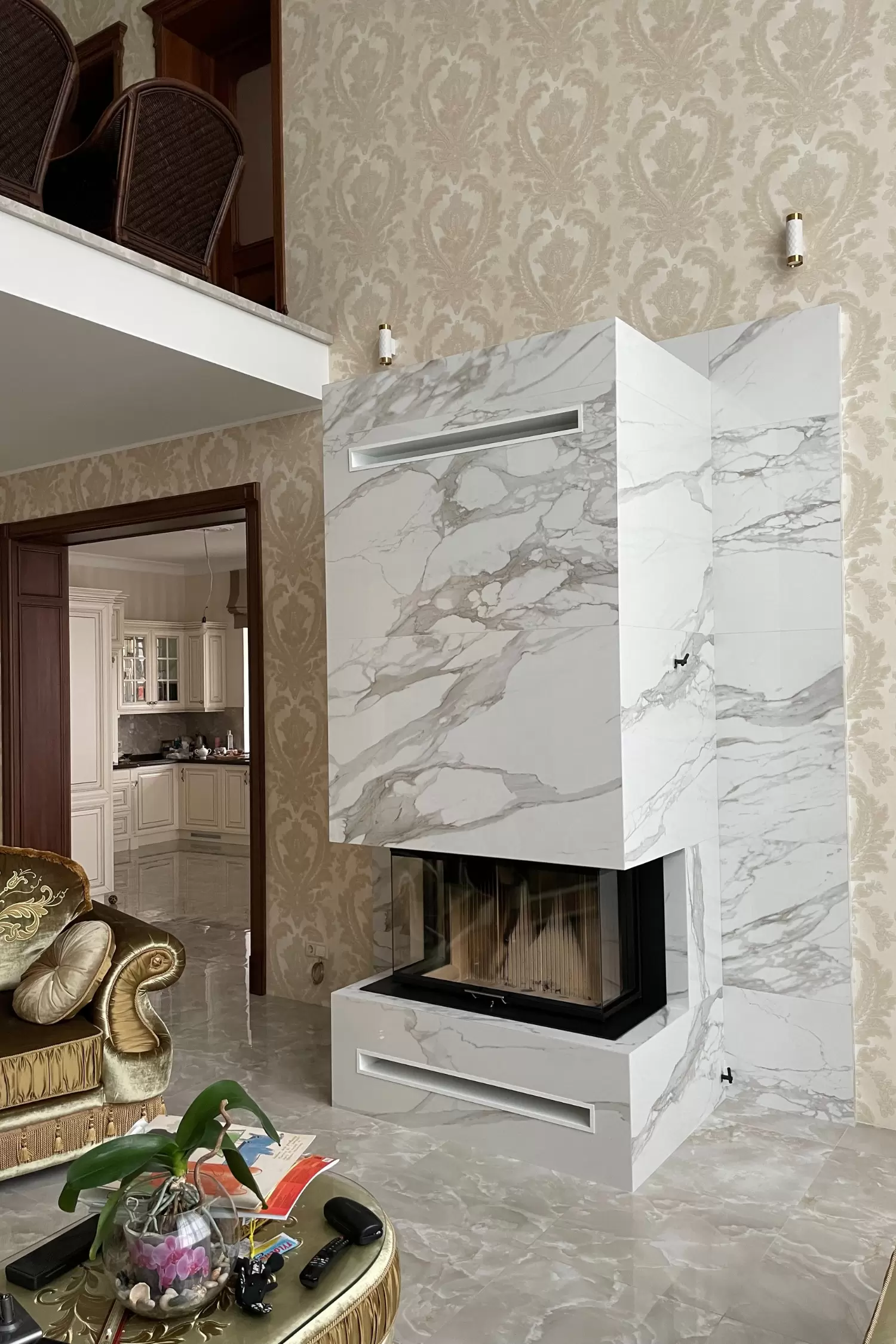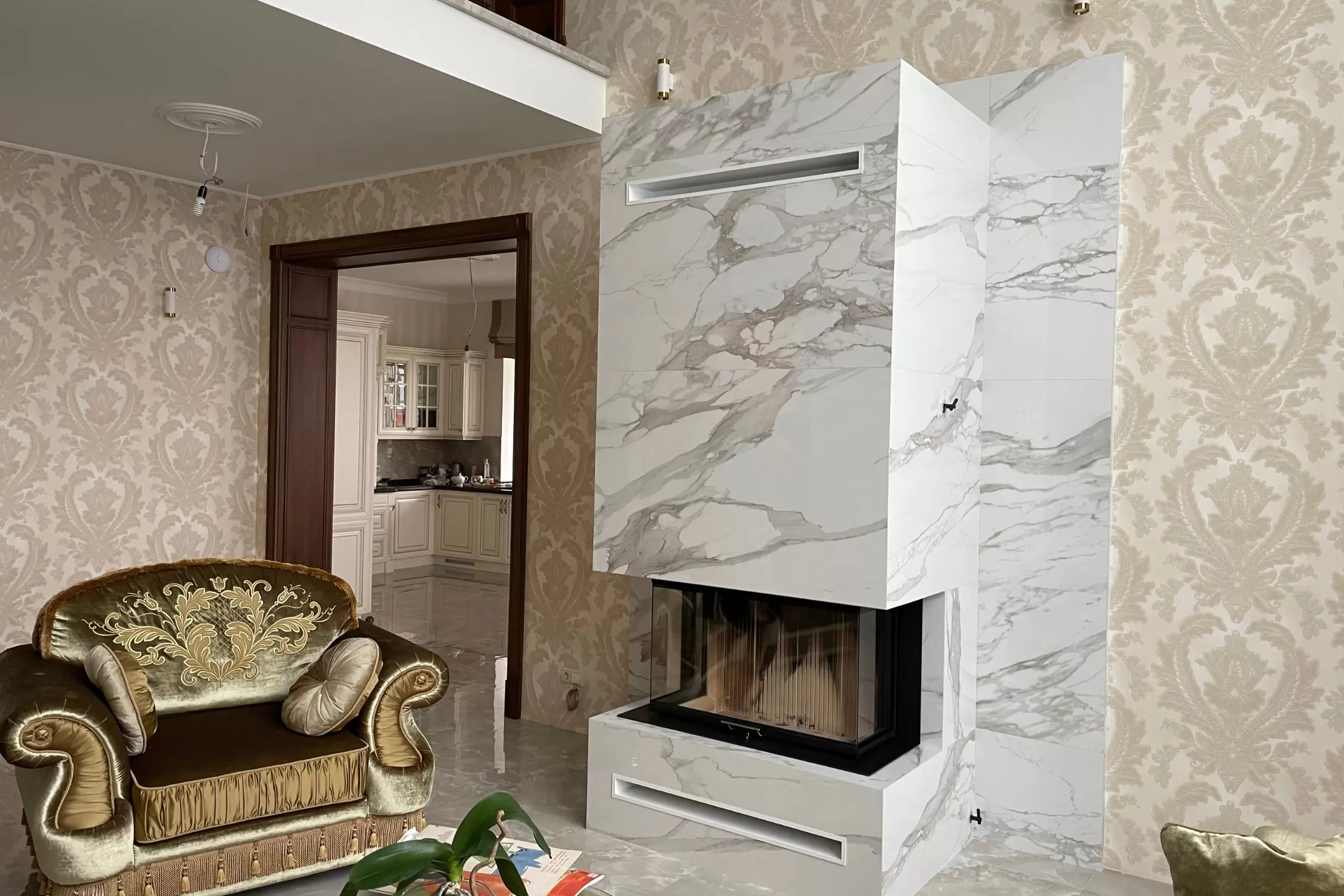 - установлена каминная топка;