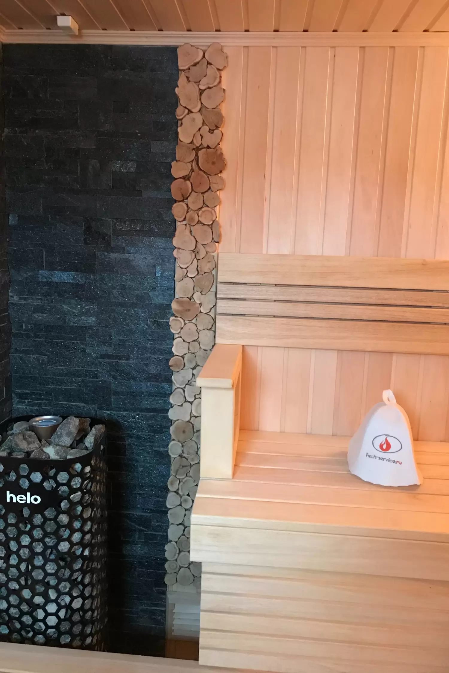 Панно из можжевельника стало очень приятной изюминкой парной, оно не только декорирует помещение, но также при нагреве очень приятно пахнет. Панно изготовлено по месту.