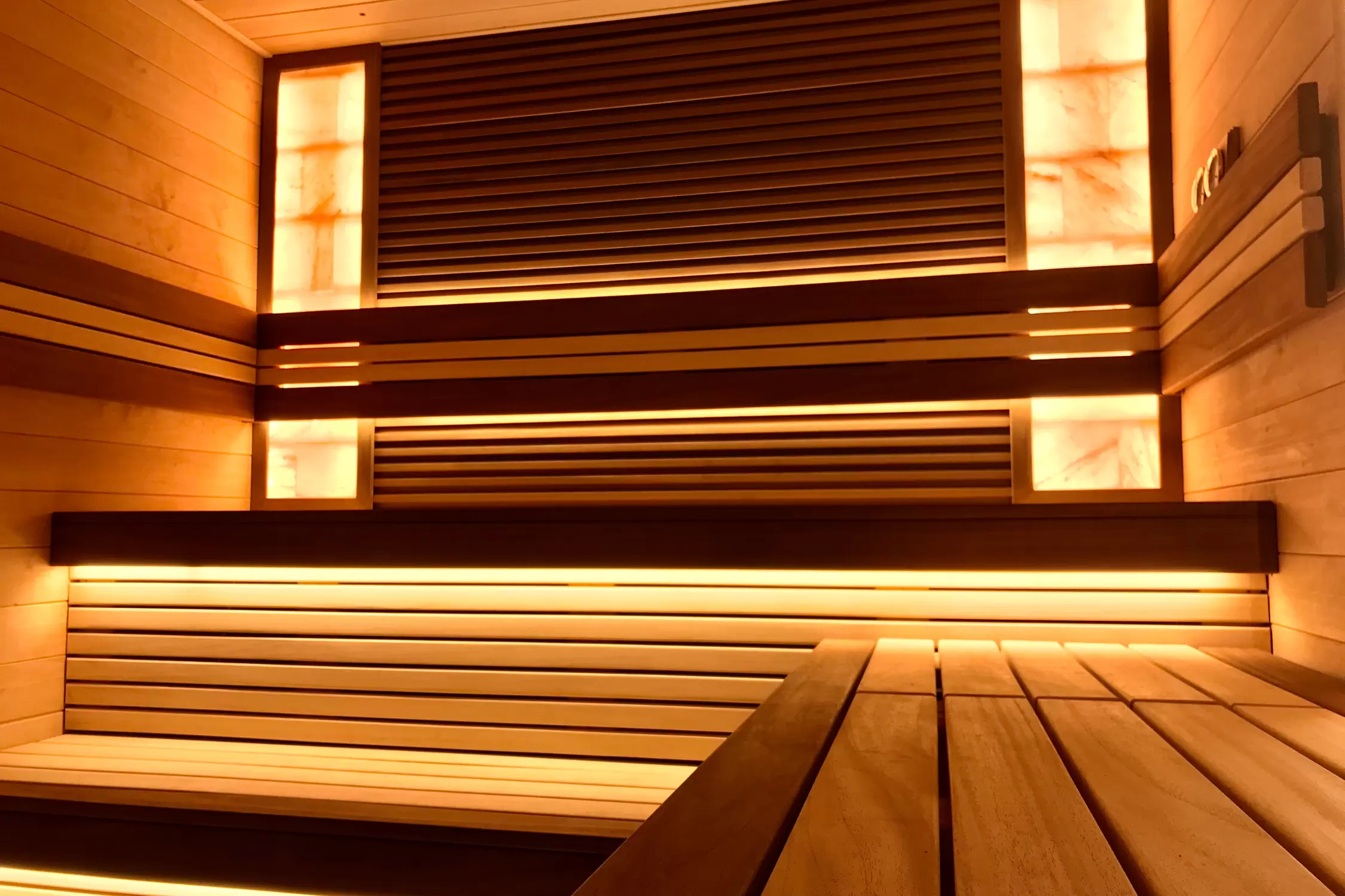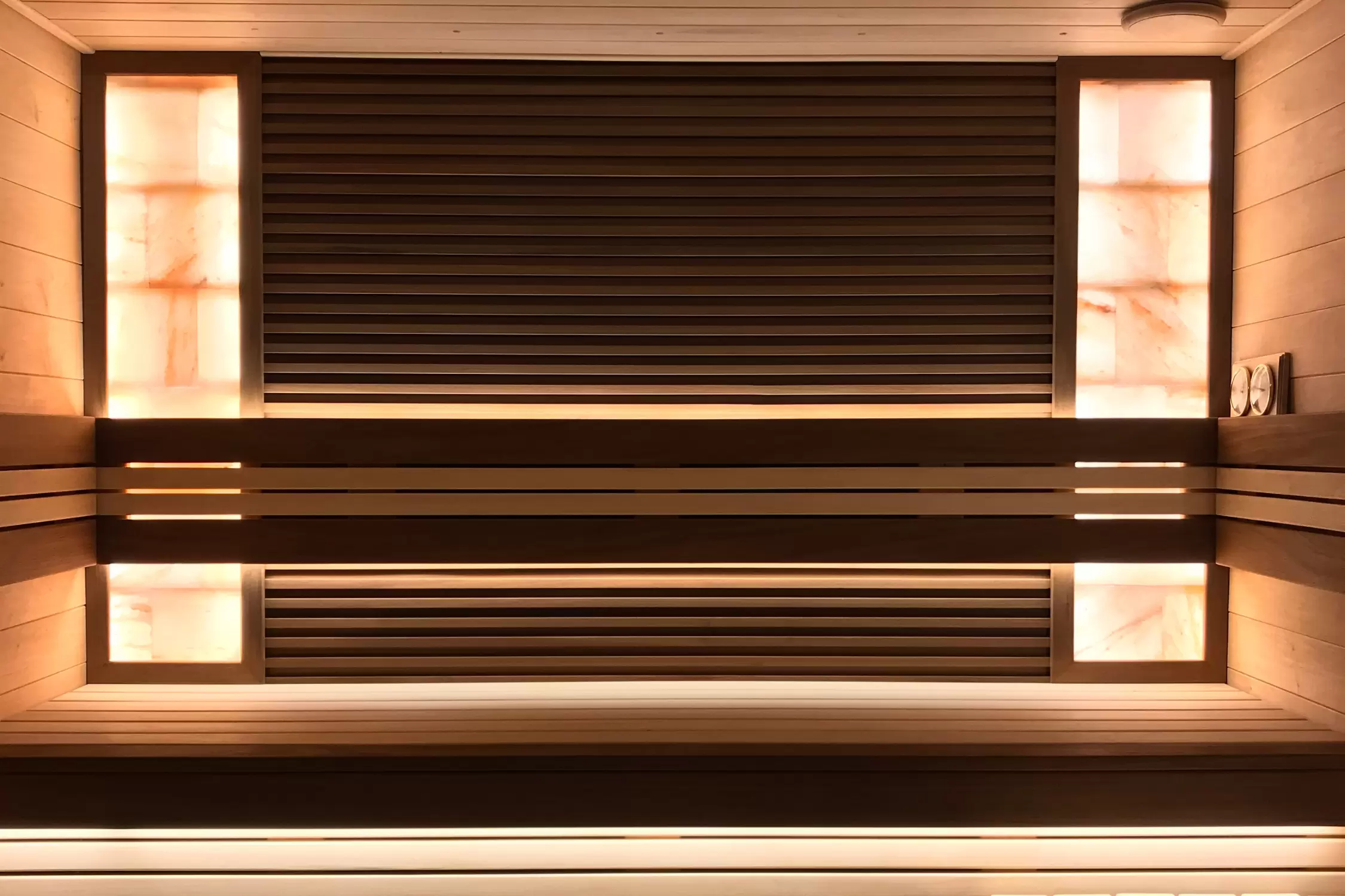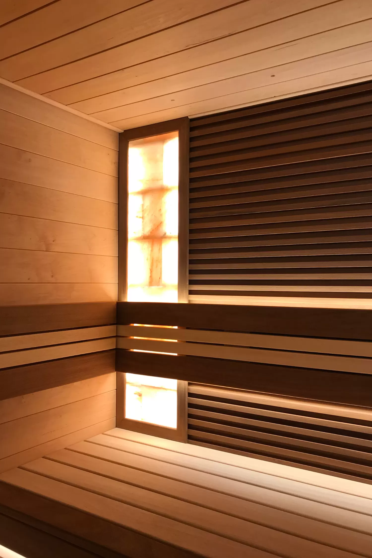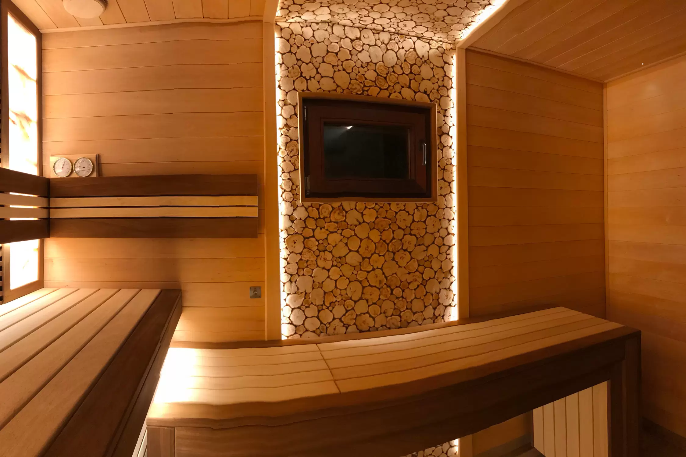 Очень интересный в исполнении и длительный проект. Сочетает в себе такие функциональные и эстетические решения как мобильный полок для парения с притоком воздуха, светильники из гималайской соли, панно из можжевельника, светодиодную подсветку полоков, декоративную стену из реечного абаша. Работы по данной парной велись на протяжении практически трех месяцев, что позволило довести данный проект до идеального состояния.