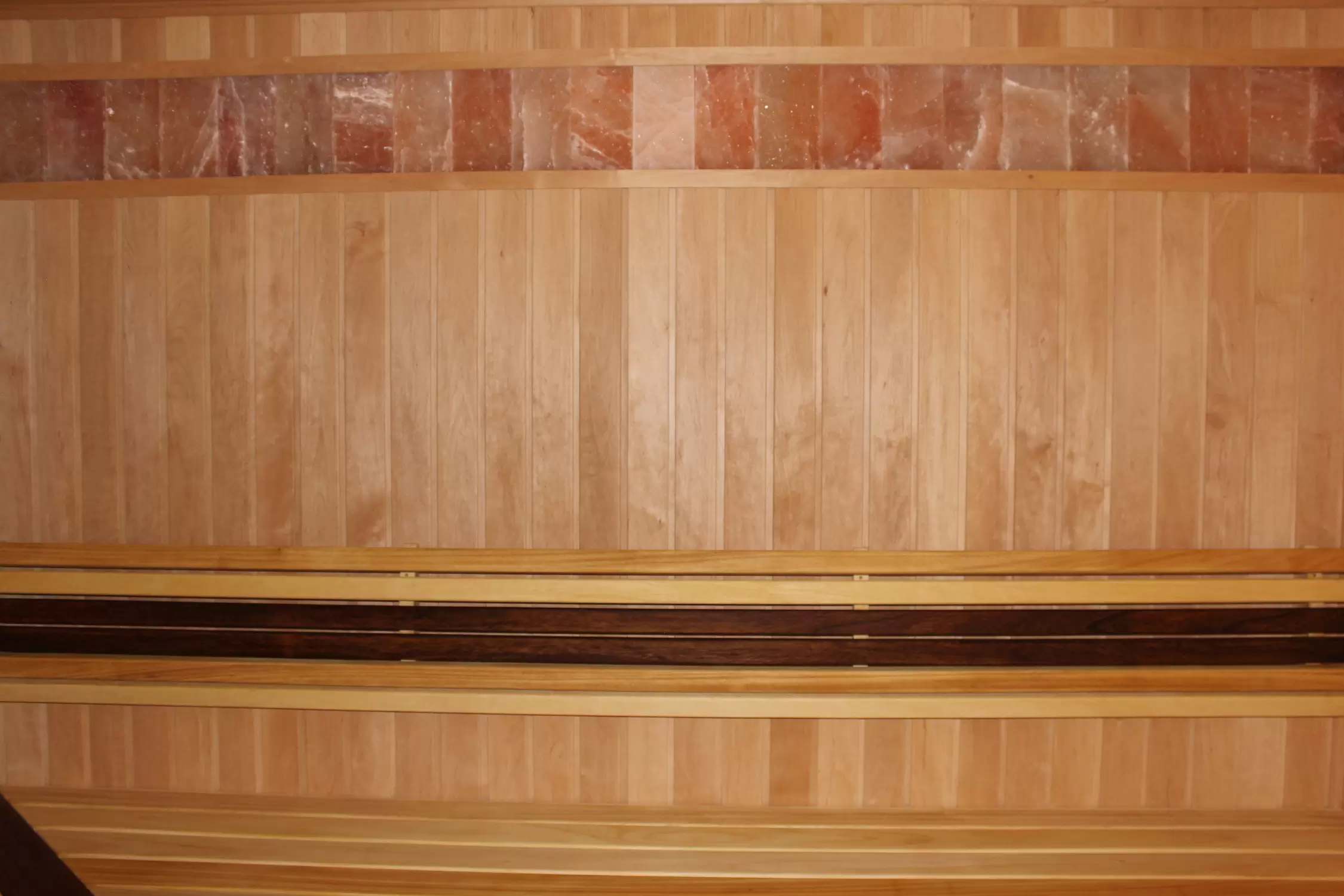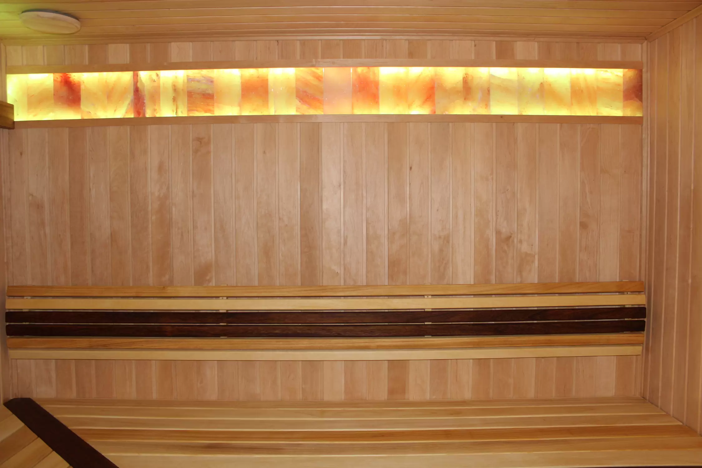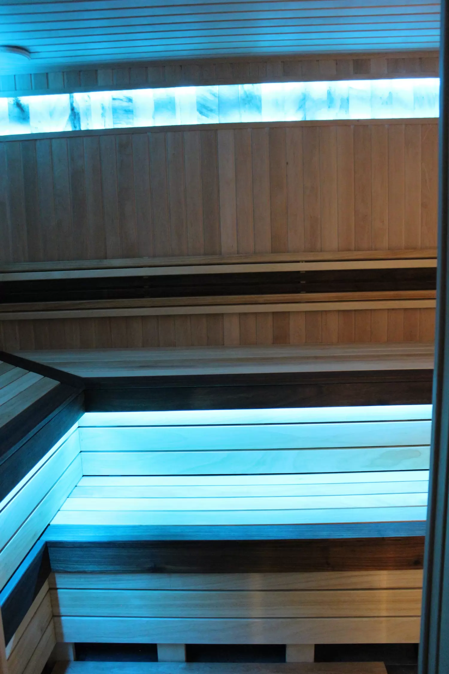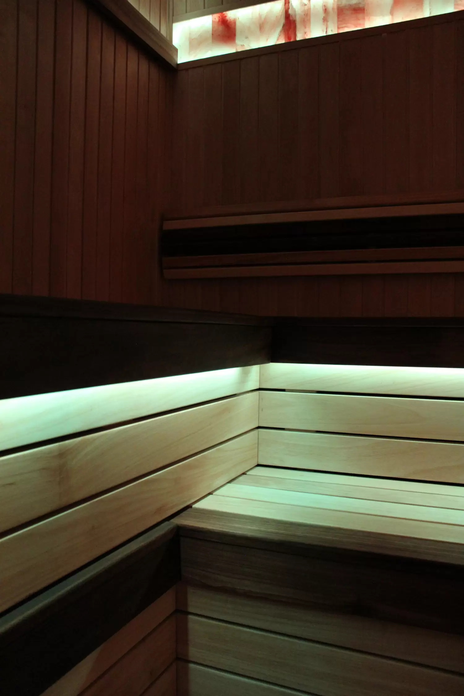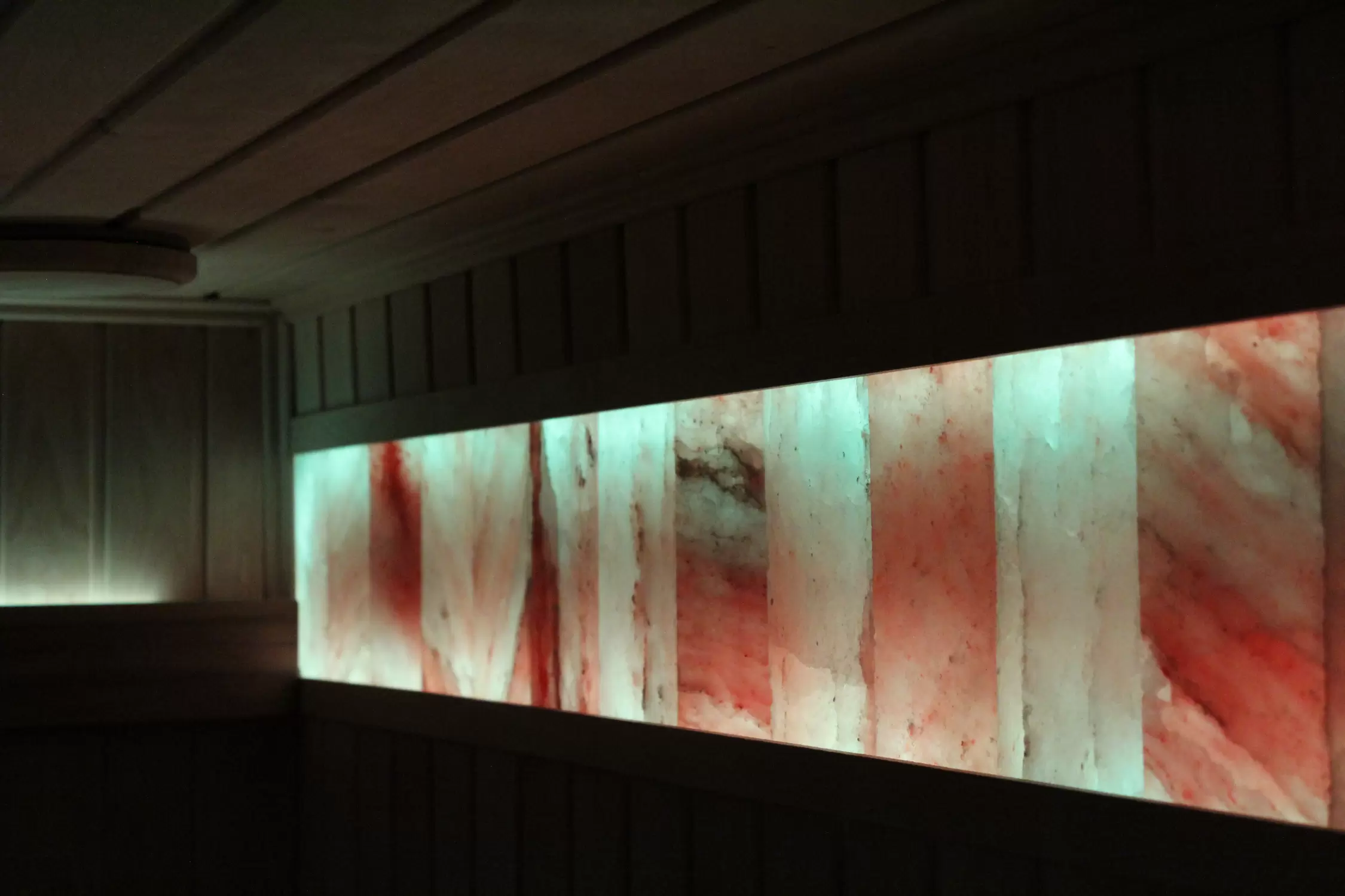 - Светильник из гималайсокй соли в сочетании со светодиодной подсветкой по периметру парной.
