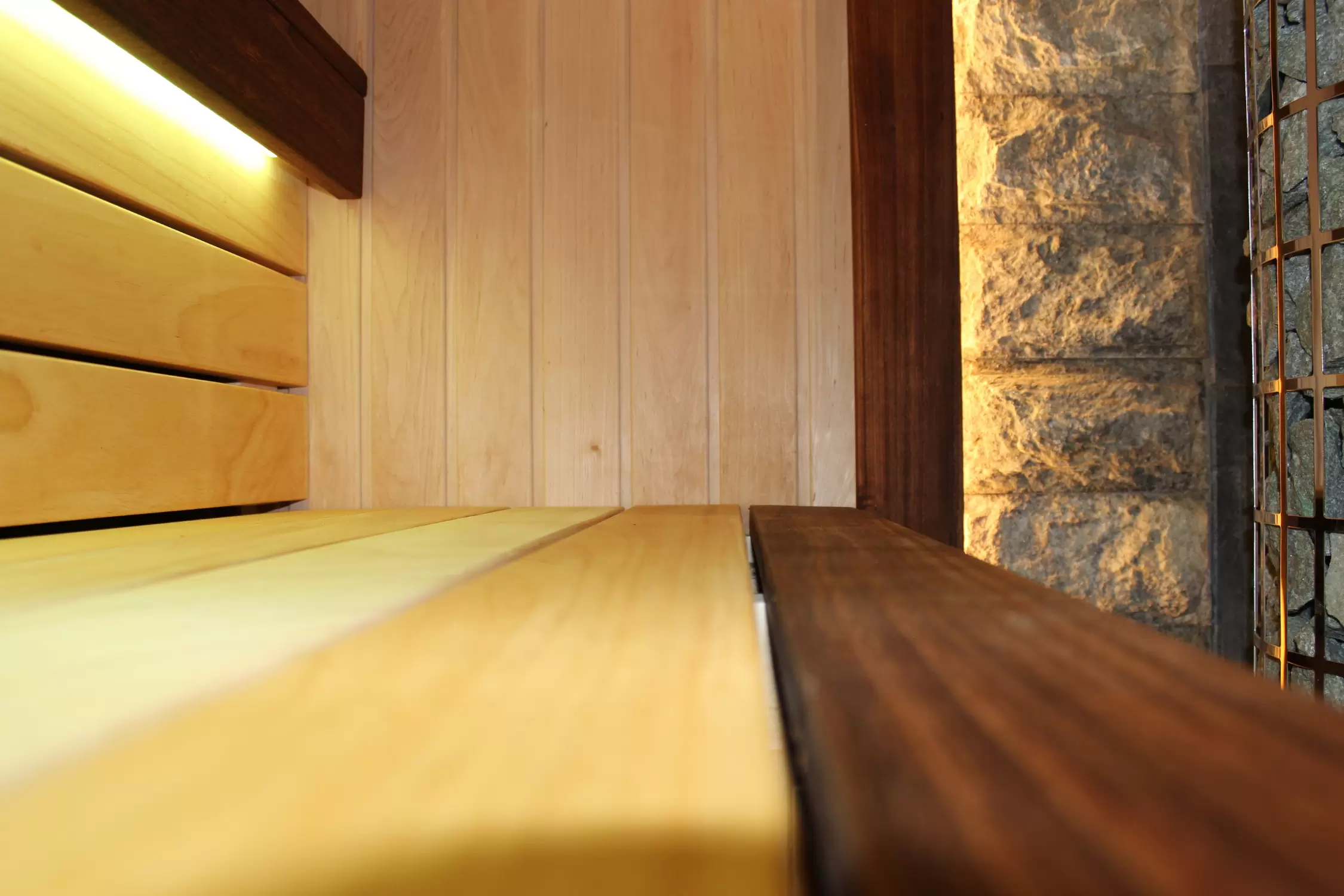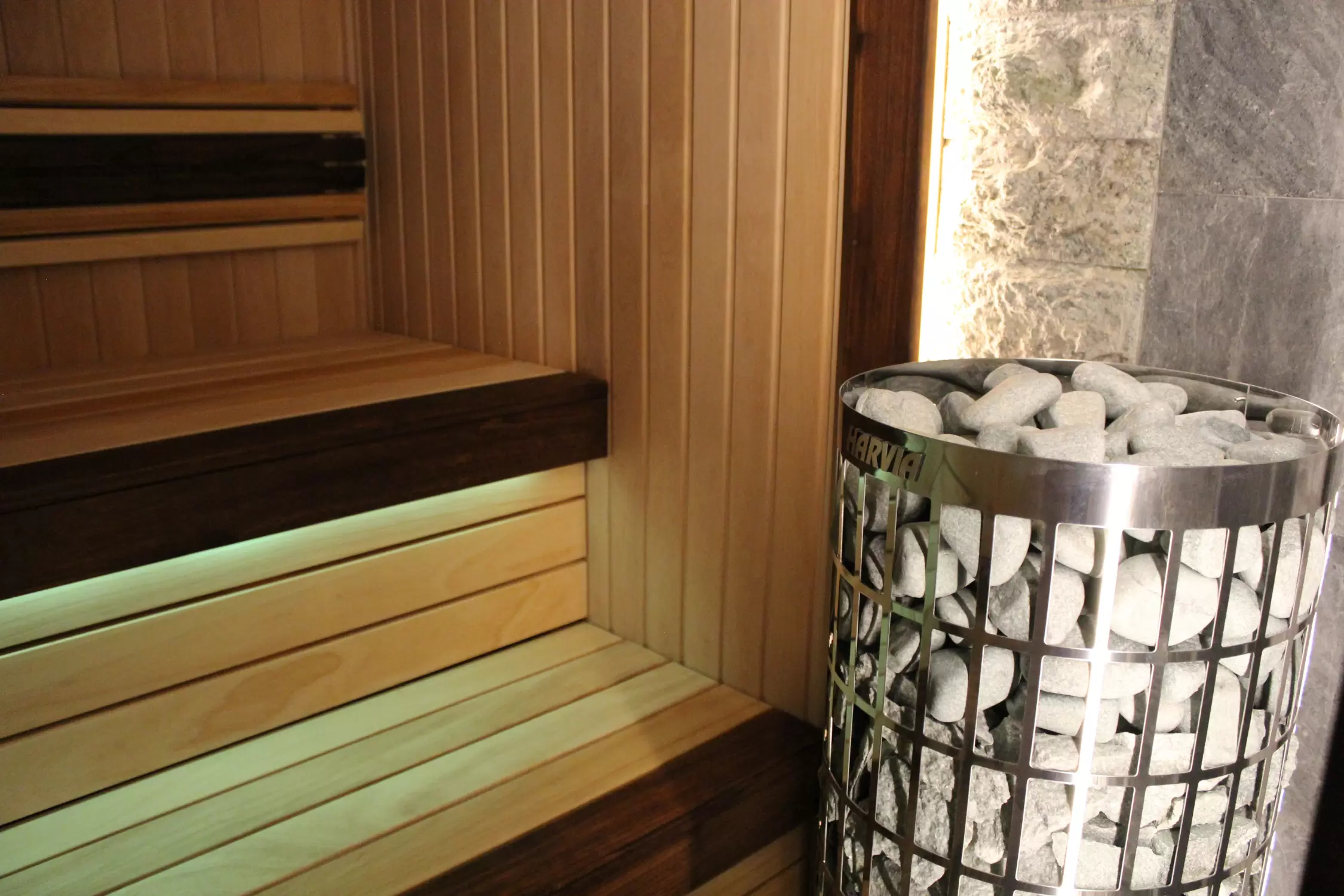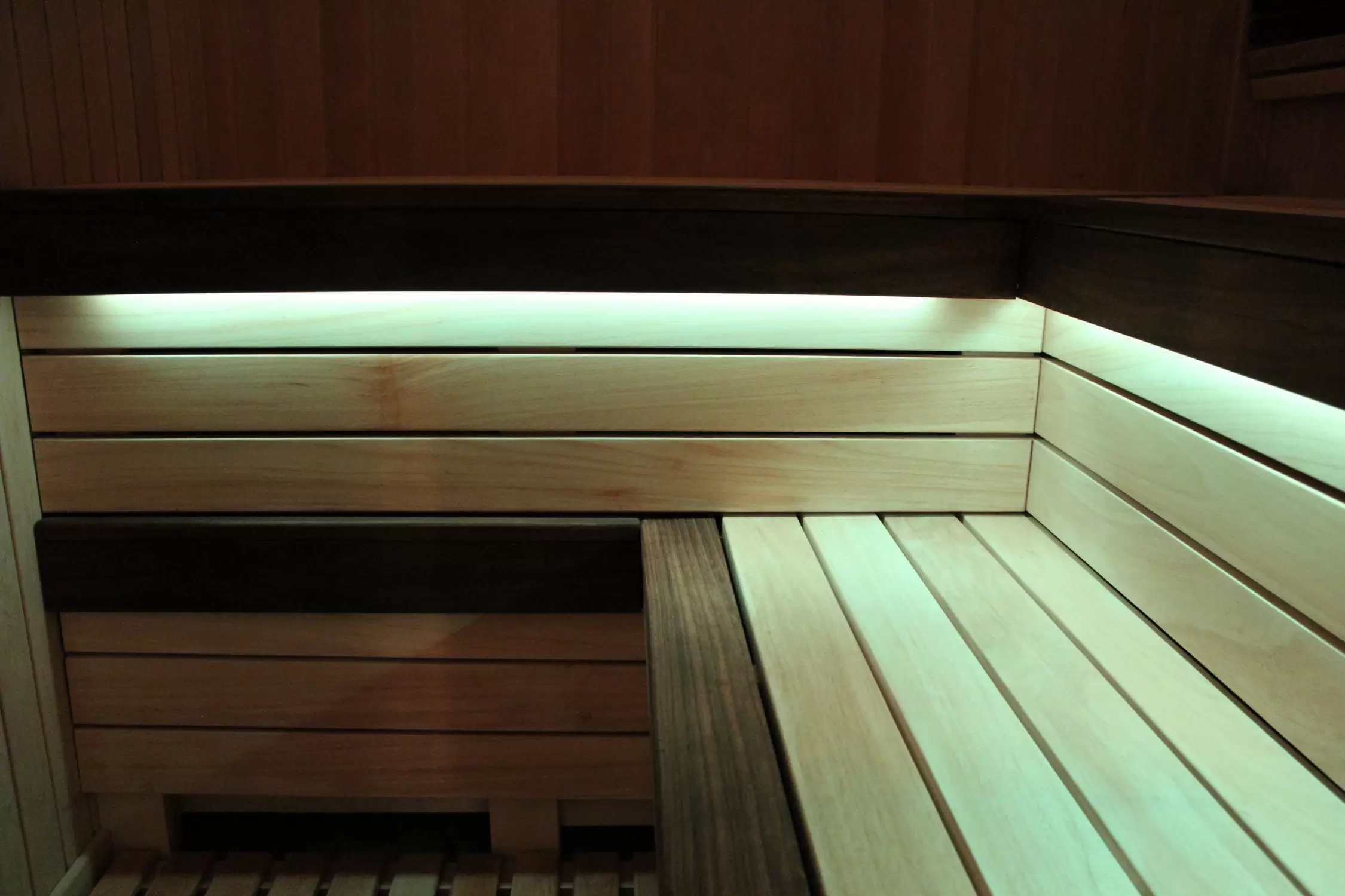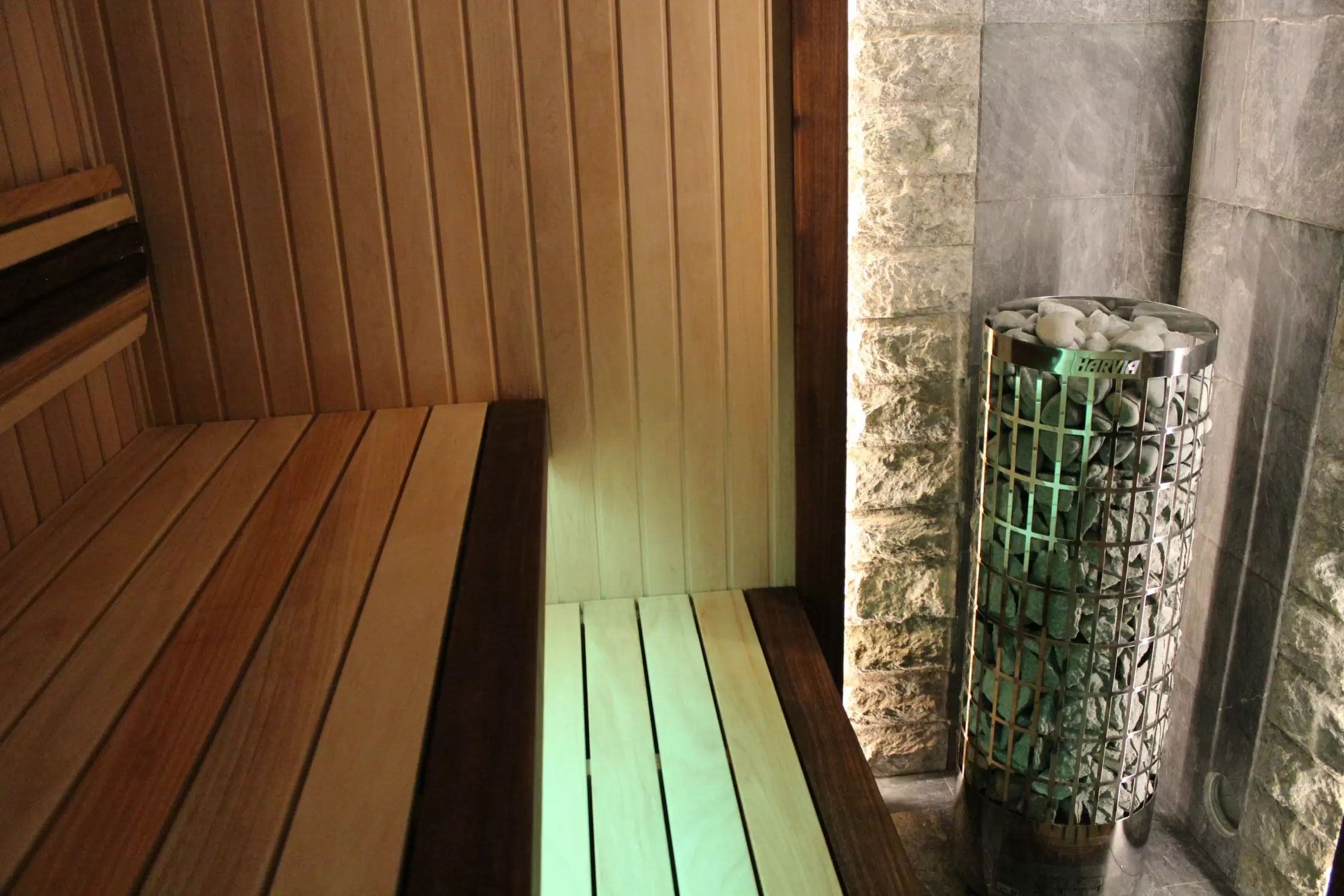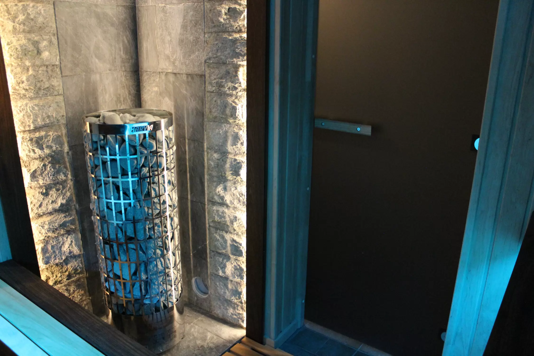 - Светильник из гималайсокй соли в сочетании со светодиодной подсветкой по периметру парной.