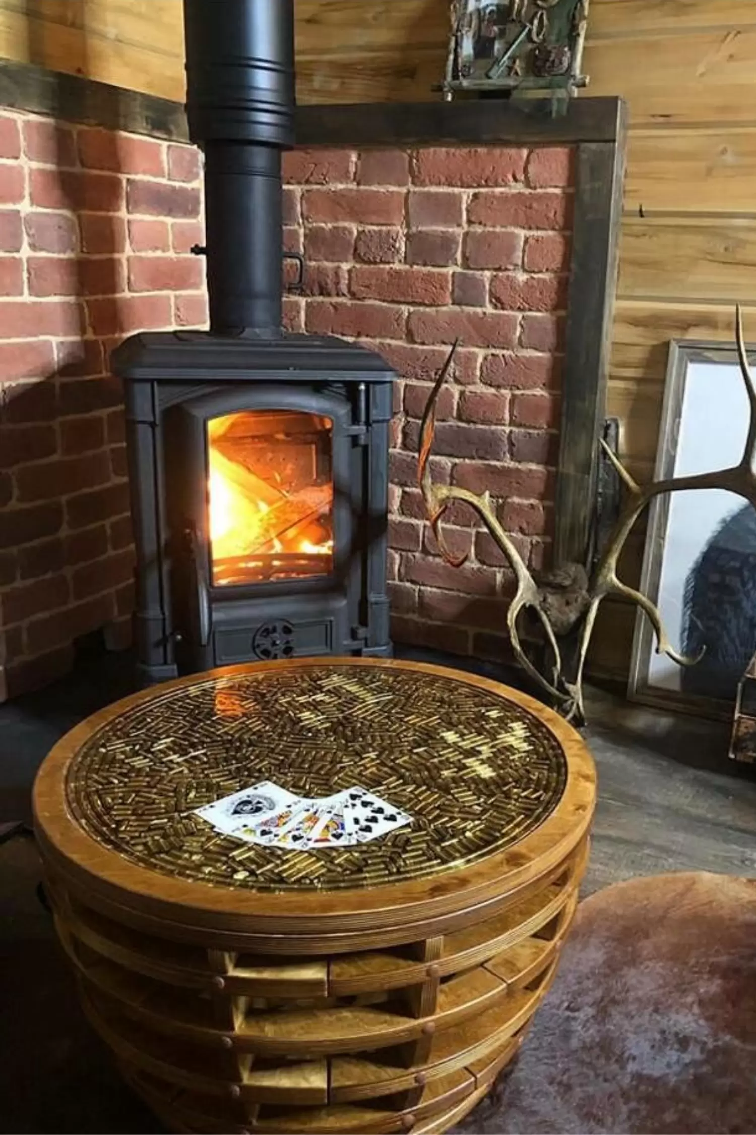 Один из тех проектов, на реализацию которых приятно смотреть в уже оформленном интерьере. Сама по себе печь-камин Arina в сочетании с черным дымоходом Schiedel смотрится стильно и аккуратно и отлично вписывается в интерьер небольшого дачного дома. Но в данным проекте изюминкой стала не сама печь, а детали интерьера, использованные хозяином для оформления пространства возле печки.